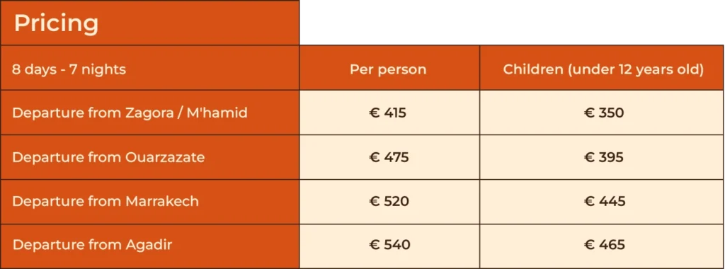 • The journey is suitable for children from 9 years old (with a saddle dromedary).